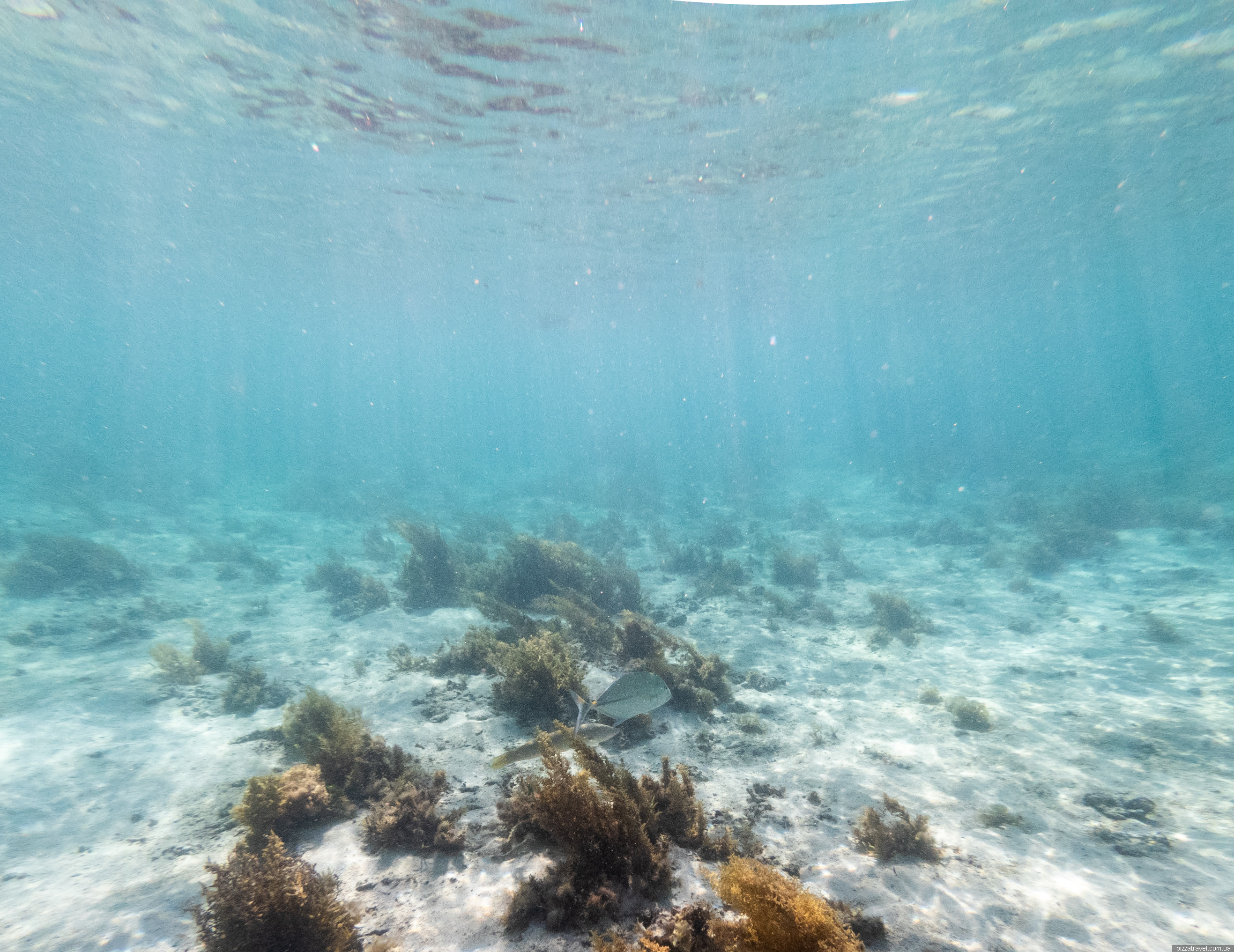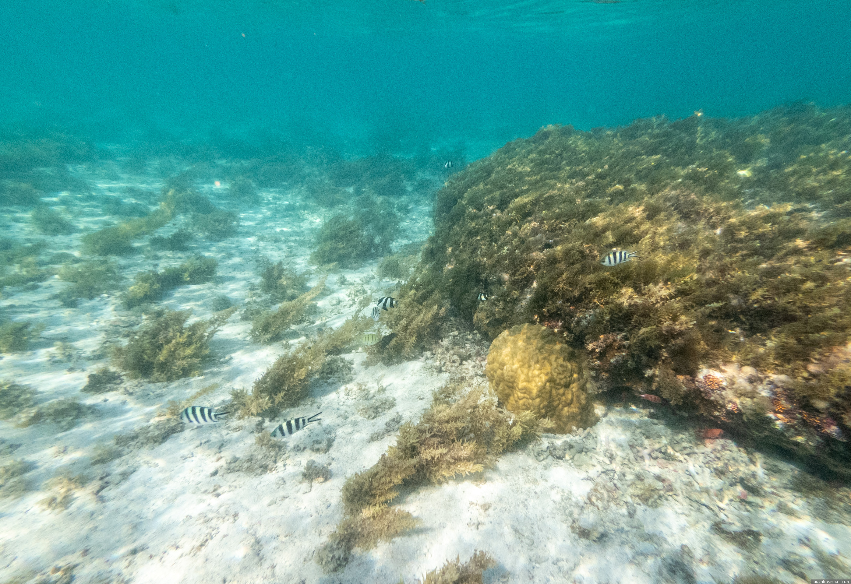 В інтернеті ми знайшли інформацію, що ось тут хороший сноркелінг -20.435120, 57.318200. Однак ми нормально поплавали і на південній частині пляжу.