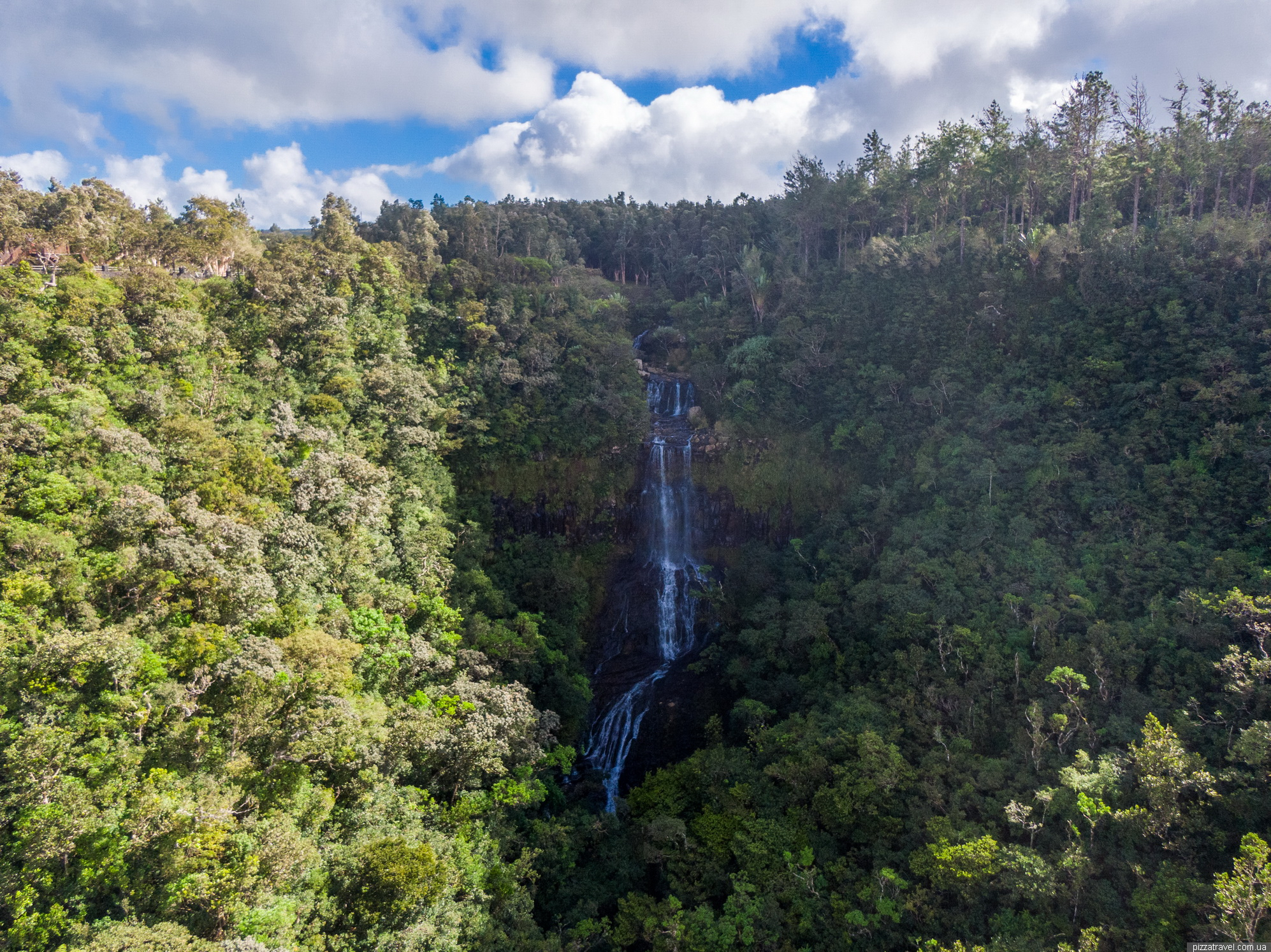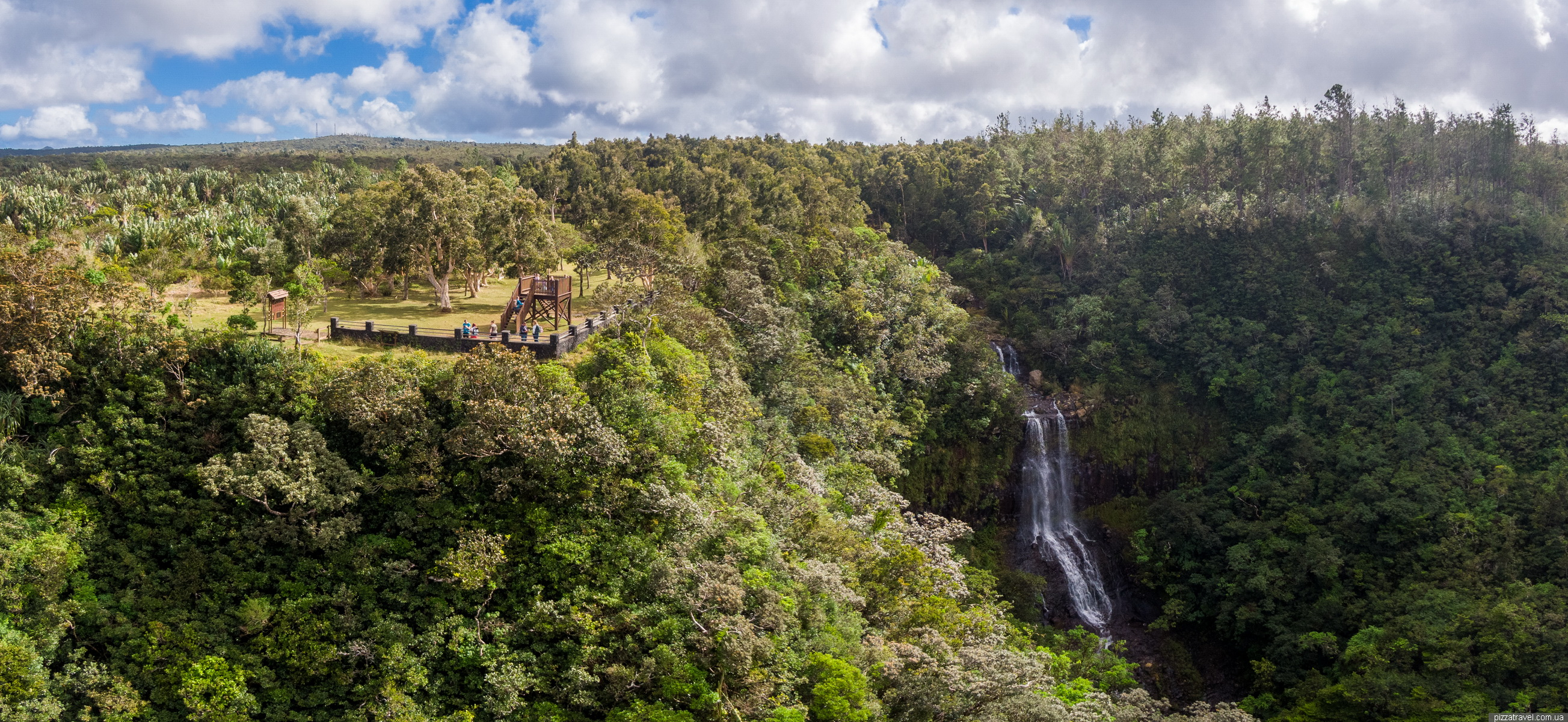 Несмотря на название, водопада вы тут не увидите, однако место красивое, есть смысл заехать. Маврикийцы обустроили хорошую парковку и прогулочные дорожки. Есть смотровая платформа, но водопада с нее не видно, увидеть его можно только с дрона.